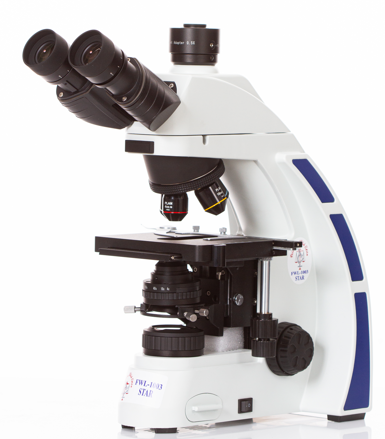 Iluminação embutida na base equipada, com Luz transmitida e iluminador de lâmpada de halogênio 6v/30W (Opcional LED de 6000 Kelvins) provida de diafragma de campo para iluminação segundo kòhler.