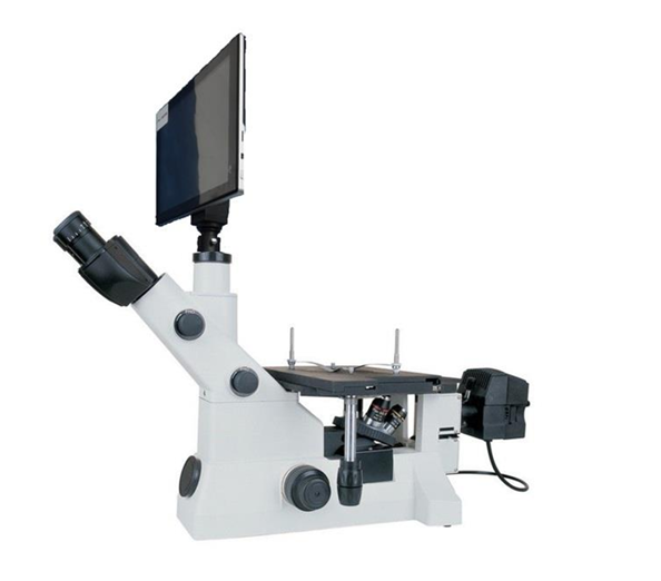 Microscópio metalográfico invertido Com Câmera Digital de Alta Resolução e Tela (TouthScren )Com Software para Morfometria e Analises de Imagens Estativa modular ergonométrica de grande robustez, com ajuste de foco (vertical) com graduação de 2 mícrons (0,002 mm) e alavanca de pré-focalização, ajuste de foco com graduação de um micro, com ajuste fino de 0,1mm por rotação de tensão na cremalheira, encaixe para tubo de observação com giro de 360 graus, revólver porta-objetivas, iluminação com sistema óptico “Koehler” adaptável, controle de intensidade de luz variável com escala indicadora da intensidade, platina com coordenadas retangulares com base de apoio com comando coaxial posicionado ao lado direito.